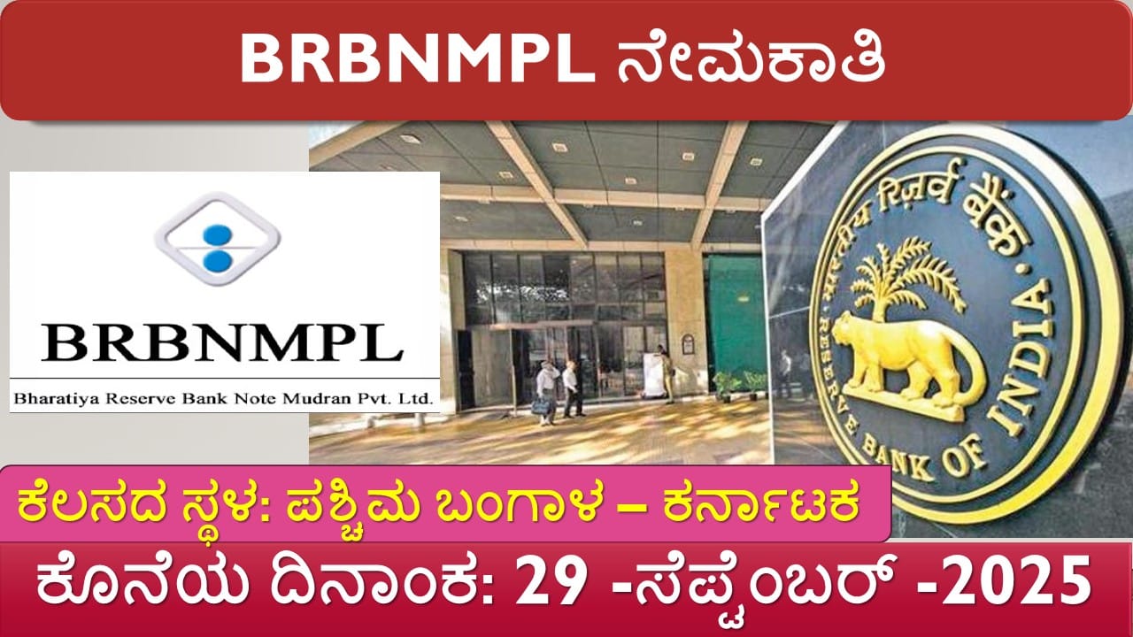 BRBNMPL ನೇಮಕಾತಿ 2025: ಭಾರತೀಯ ರಿಸರ್ವ್ ಬ್ಯಾಂಕ್ ನೋಟ್ ಮುದ್ರಣ ಪ್ರೈವೇಟ್ ಲಿಮಿಟೆಡ್ (BRBNMPL) ಸಂಸ್ಥೆ 88 ಡೆಪ್ಯೂಟಿ ಮ್ಯಾನೇಜರ್ ಮತ್ತು ಪ್ರೊಸೆಸ್ ಅಸಿಸ್ಟಂಟ್ ಹುದ್ದೆಗಳನ್ನು ಭರ್ತಿ