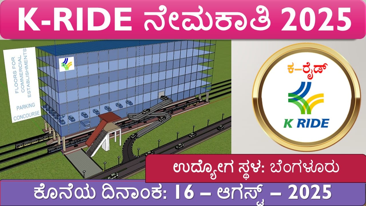 KRIDE ನೇಮಕಾತಿ 2025: 01 ಜನರಲ್ ಮ್ಯಾನೇಜರ್ (ಸಿಗ್ನಲಿಂಗ್ ಮತ್ತು ಟೆಲಿಕಮ್ಯುನಿಕೇಶನ್) ಹುದ್ದೆಗೆ ಅರ್ಜಿ ಆಹ್ವಾನಿಸಲಾಗಿದೆ. ರೈಲ್ ಇನ್ಫ್ರಾಸ್ಟ್ರಕ್ಚರ್ ಡೆವಲಪ್ಮೆಂಟ್ ಕಂಪನಿ (ಕರ್ನಾಟಕ) ಲಿಮಿಟೆಡ್, ಅಧಿಕೃತ ಪ್ರಕಟಣೆ