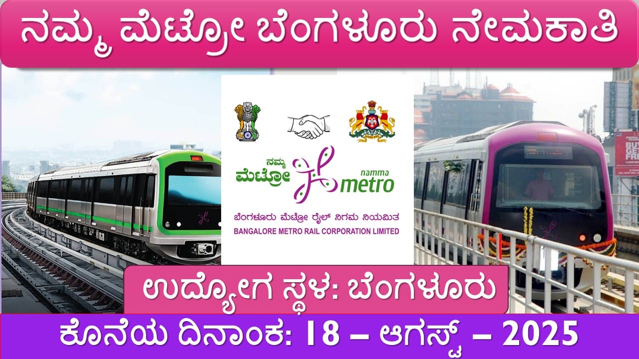 BMRCL ನೇಮಕಾತಿ 2025: ಬೆಂಗಳೂರು ಮೆಟ್ರೋ ರೈಲ್ ಕಾರ್ಪೊರೇಷನ್ ಲಿಮಿಟೆಡ್ (BMRCL) ಜುಲೈ 2025ರ ಅಧಿಕೃತ ಪ್ರಕಟಣೆಯ ಮೂಲಕ 08 ಅಸಿಸ್ಟೆಂಟ್ ಚೀಫ್ ಸೆಕ್ಯುರಿಟಿ ಆಫೀಸರ್, ಇನ್ವೆಸ್ಟಿಗೇಟಿಂಗ್