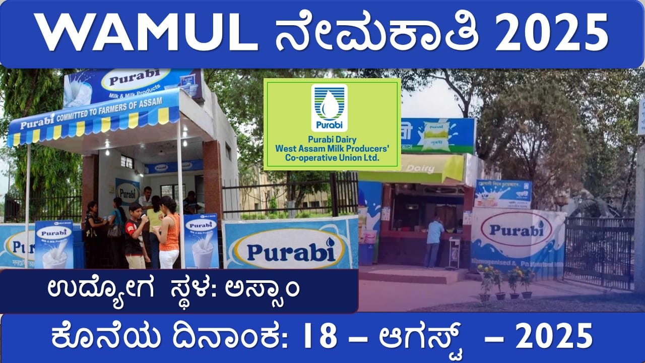 WAMUL ನೇಮಕಾತಿ 2025: ವಿವಿಧ ಎಕ್ಸಿಕ್ಯೂಟಿವ್, ಅಸಿಸ್ಟೆಂಟ್ ಹುದ್ದೆಗಳಿಗೆ ಅರ್ಜಿ ಆಹ್ವಾನಿಸಲಾಗಿದೆ. West Assam Milk Producers Cooperative Union Limited (WAMUL) ಸಂಸ್ಥೆ ಯೋಗ್ಯ ಮತ್ತು