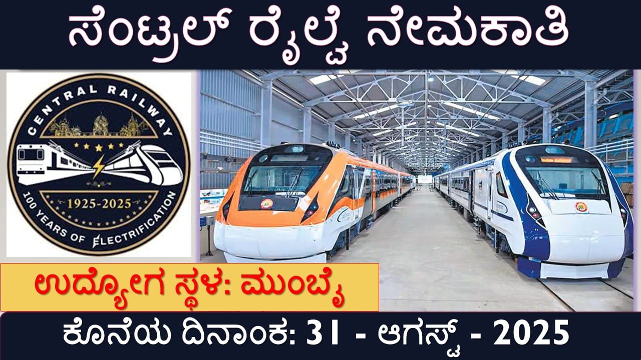 Central Railway Recruitment 2025: ಮುಂಬೈ – ಮಹಾರಾಷ್ಟ್ರದಲ್ಲಿ ಉದ್ಯೋಗವನ್ನು ಹುಡುಕುತ್ತಿರುವ ಅಭ್ಯರ್ಥಿಗಳಿಗಾಗಿ ಮಧ್ಯ ರೈಲ್ವೆ ಇಲಾಖೆಯಿಂದ 59 ಗ್ರೂಪ್ C ಮತ್ತು ಗ್ರೂಪ್ D ಹುದ್ದೆಗಳ