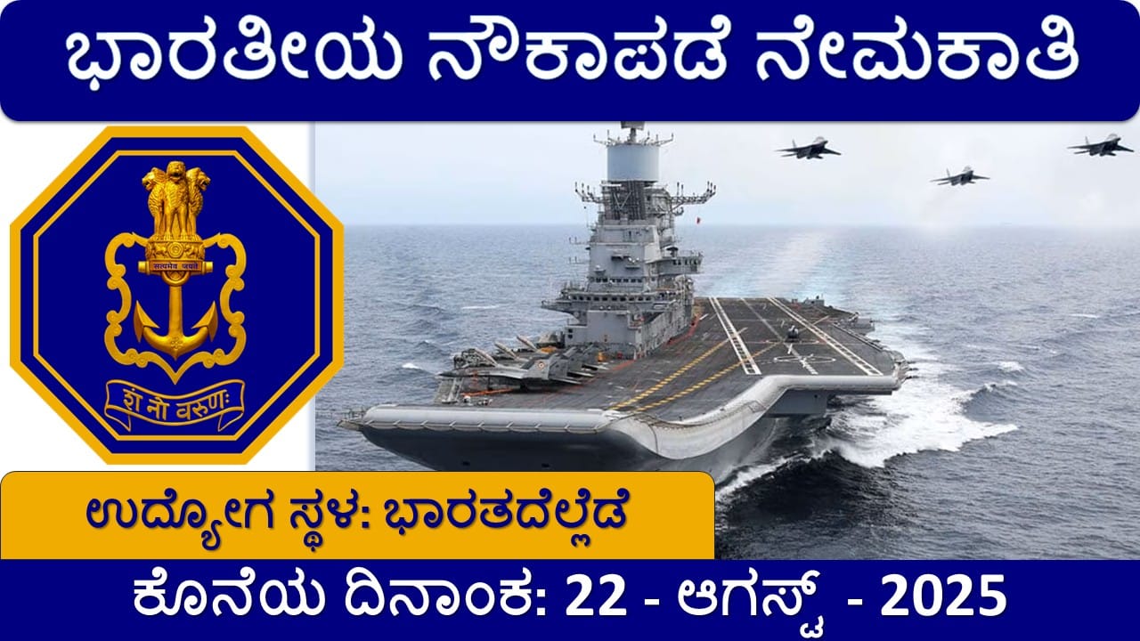 ಭಾರತೀಯ ನೌಕಾಪಡೆ ನೇಮಕಾತಿ 2025: ಭಾರತೀಯ ನೌಕಾಪಡೆಯು ಟೆಕ್ನಿಷಿಯನ್ ಅಪ್ರೆಂಟಿಸ್ (Technician Apprentice) ಹುದ್ದೆಗಳ ಭರ್ತಿಗಾಗಿ ಅರ್ಹ ಹಾಗೂ ಆಸಕ್ತ ಅಭ್ಯರ್ಥಿಗಳಿಂದ ಆನ್ಲೈನ್ ಅರ್ಜಿಗಳನ್ನು ಆಹ್ವಾನಿಸಿದೆ. ಭಾರತಾದ್ಯಂತ