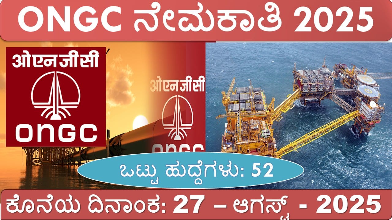 ONGC ನೇಮಕಾತಿ 2025:ಐಲ್ ಅಂಡ್ ನ್ಯಾಚುರಲ್ ಗ್ಯಾಸ್ ಕಾರ್ಪೊರೇಷನ್ (ONGC) ಸಂಸ್ಥೆಯು 52 ಜೂನಿಯರ್ ಮತ್ತು ಅಸೋಸಿಯೇಟ್ ಕನ್ಸಲ್ಟಂಟ್ ಹುದ್ದೆಗಳಿಗೆ ಅರ್ಹ ಹಾಗೂ ಆಸಕ್ತ ಅಭ್ಯರ್ಥಿಗಳಿಂದ ಅರ್ಜಿಗಳನ್ನು