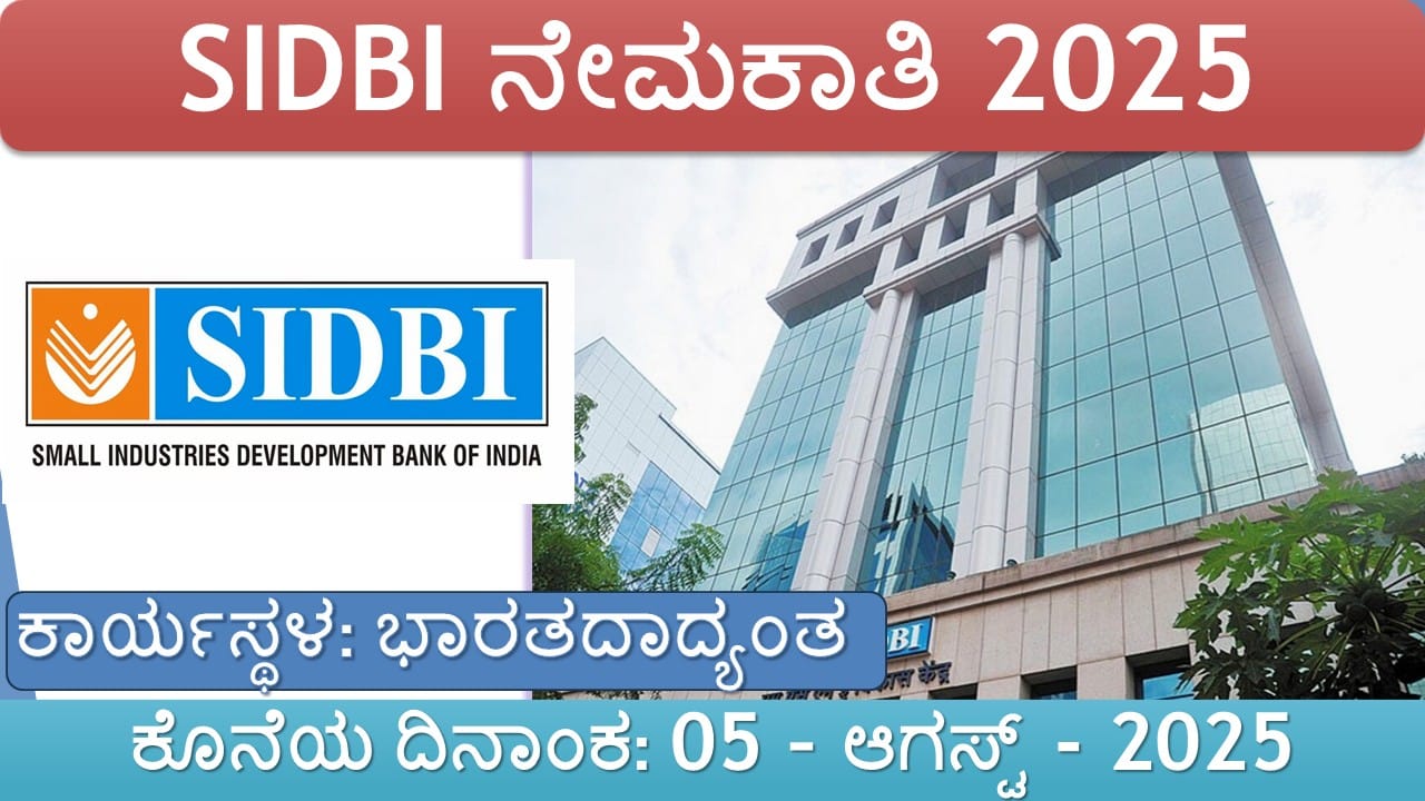 SIDBI ನೇಮಕಾತಿ 2025: ಸ್ಮಾಲ್ ಇಂಡಸ್ಟ್ರೀಸ್ ಡೆವಲಪ್ಮೆಂಟ್ ಬ್ಯಾಂಕ್ ಆಫ್ ಇಂಡಿಯಾ (SIDBI) ಸಂಸ್ಥೆಯು 41 ಕನ್ಸಲ್ಟೆಂಟ್ ಕ್ರೆಡಿಟ್ ಅನಾಲಿಸ್ಟ್ (Consultant Credit Analyst) ಹುದ್ದೆಗಳಿಗೆ ಅರ್ಹ