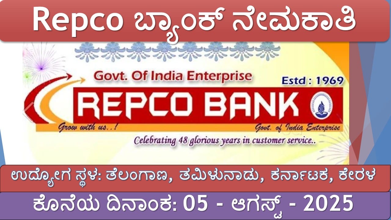 Repco ಬ್ಯಾಂಕ್ ನೇಮಕಾತಿ 2025: Repco ಬ್ಯಾಂಕ್ 10 ಮಾರ್ಕೆಟಿಂಗ್ ಅಸೋಸಿಯೇಟ್ ಹುದ್ದೆಗಳಿಗೆ ಅರ್ಜಿ ಆಹ್ವಾನಿಸಿದೆ. ಆಸಕ್ತ ಹಾಗೂ ಅರ್ಹ ಅಭ್ಯರ್ಥಿಗಳು 05-ಆಗಸ್ಟ್-2025ರ ಒಳಗೆ ಆಫ್ಲೈನ್ ಮೂಲಕ