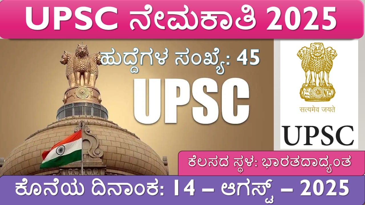 ಯುಪಿಎಸ್ಸಿ ನೇಮಕಾತಿ 2025:ಸಹಾಯಕ ನಿರ್ದೇಶಕ (ಸಿಸ್ಟಮ್ಸ್) ಹುದ್ದೆಗಳಿಗಾಗಿ 45 ಖಾಲಿ ಸ್ಥಾನಗಳಿಗೆ ಅರ್ಜಿ ಆಹ್ವಾನಿಸಲಾಗಿದೆ. ಯೂನಿಯನ್ ಪಬ್ಲಿಕ್ ಸರ್ವೀಸ್ ಕಮಿಷನ್ (UPSC) ಯುಪಿಎಸ್ಸಿ ಅಧಿಕೃತ ಅಧಿಸೂಚನೆ ಜುಲೈ