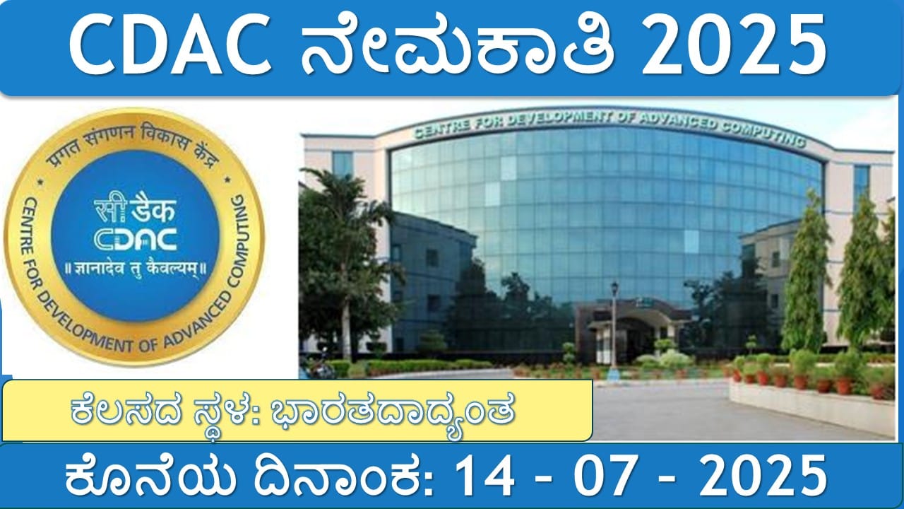 🟩 ವಿಷಯ ಶೀರ್ಷಿಕೆ: ಇದೀಗ ನೀಡಲಾದ CDAC ನೇಮಕಾತಿ 2025 ಮಾಹಿತಿಯ ಆಧಾರವಾಗಿ, ಕನ್ನಡದಲ್ಲಿ ಸ್ಪಷ್ಟವಾದ ವರ್ಗೀಕೃತ ವಿವರಗಳನ್ನು ಕೆಳಗೆ ನೀಡಲಾಗಿದೆ: 🟨 ನೇಮಕಾತಿಯ ಮುಖ್ಯಾಂಶಗಳು (Vacancy