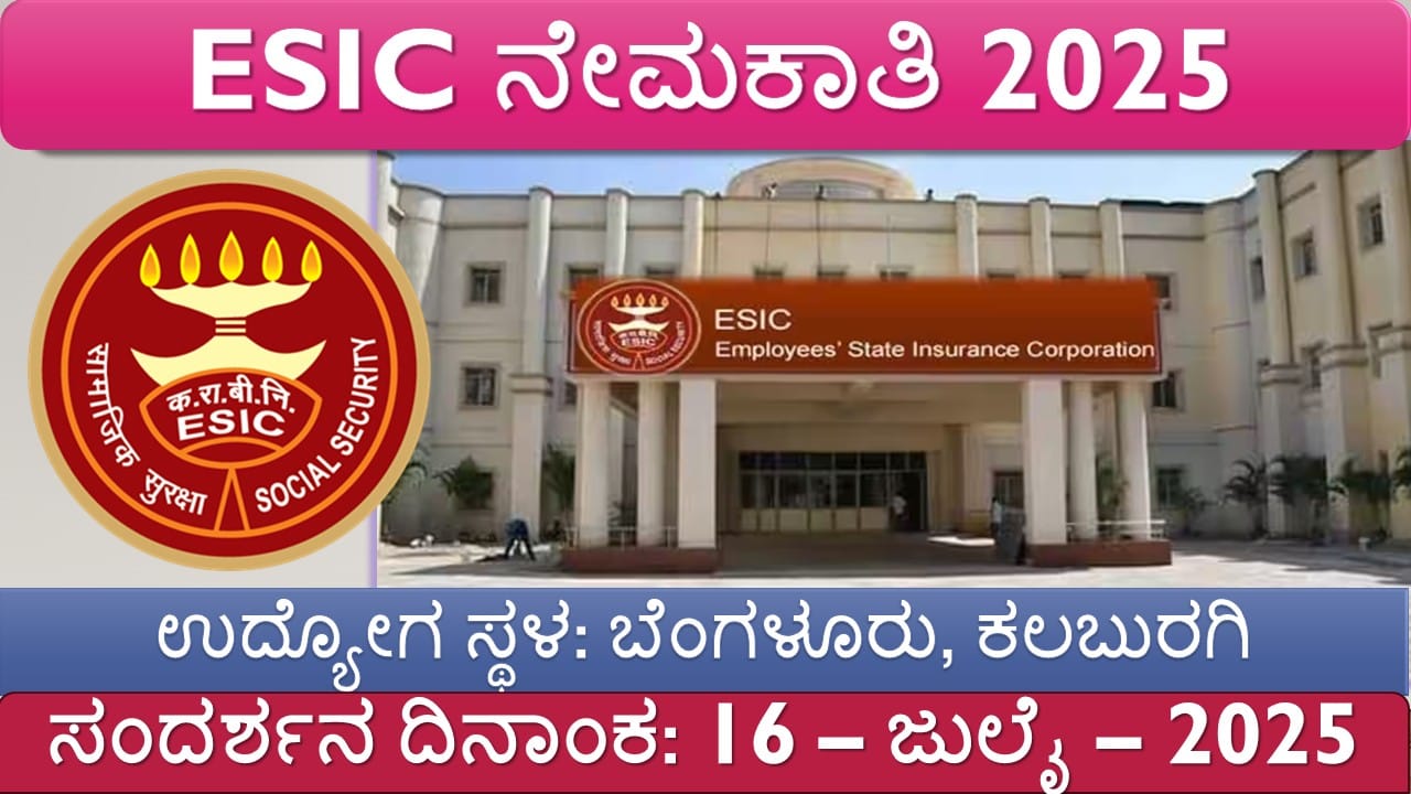 ESIC ಕರ್ನಾಟಕ ನೇಮಕಾತಿ 2025:ಕಲಬುರ್ಗಿ – ಕರ್ನಾಟಕದಲ್ಲಿ ಉದ್ಯೋಗ ಹುಡುಕುತ್ತಿರುವ ಅಭ್ಯರ್ಥಿಗಳು ಈ ಅವಕಾಶವನ್ನು ಬಳಸಿಕೊಳ್ಳಬಹುದು. ಎಂಪ್ಲಾಯೀಸ್ ಸ್ಟೇಟ್ ಇನ್ಶುರೆನ್ಸ್ ಕಾರ್ಪೊರೇಶನ್ ಕರ್ನಾಟಕ (ESIC Karnataka) ಪ್ರೊಫೆಸರ್,