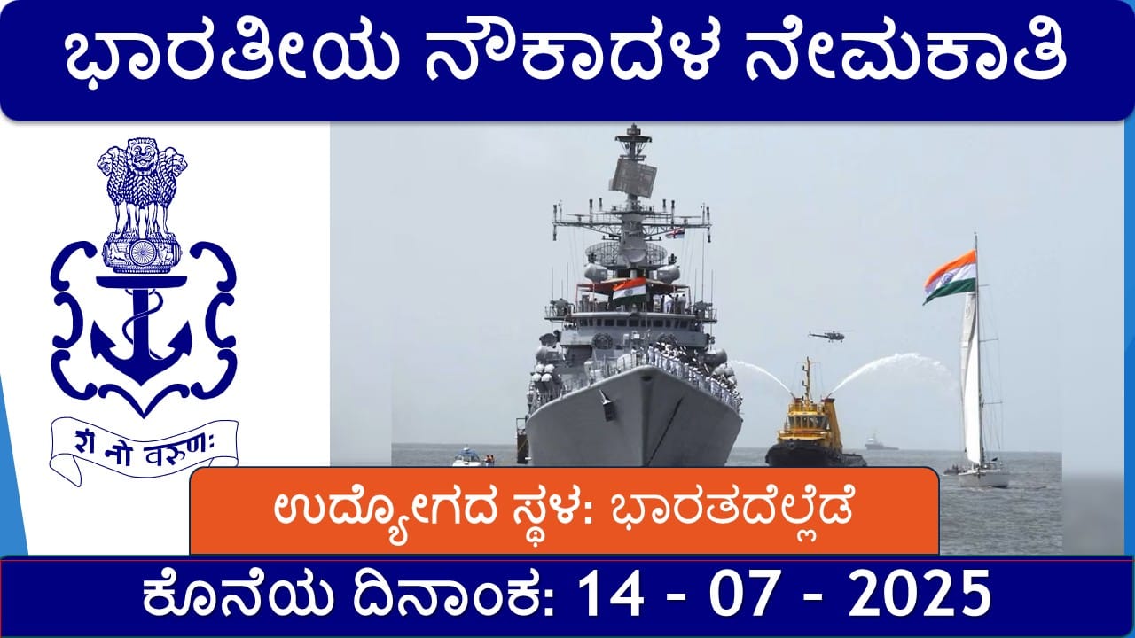 ಇದೀಗ ಪ್ರಕಟವಾದ ಭಾರತೀಯ ನೌಕಾದಳ ನೇಮಕಾತಿ 2025 (Indian Navy Recruitment 2025) ಕುರಿತು ಸಂಪೂರ್ಣ ಮಾಹಿತಿ ನಿಮಗಾಗಿ ಕನ್ನಡದಲ್ಲಿ: ಹುದ್ದೆಯ ಹೆಸರು: 10+2 (B.Tech) ಕ್ಯಾಡೆಟ್