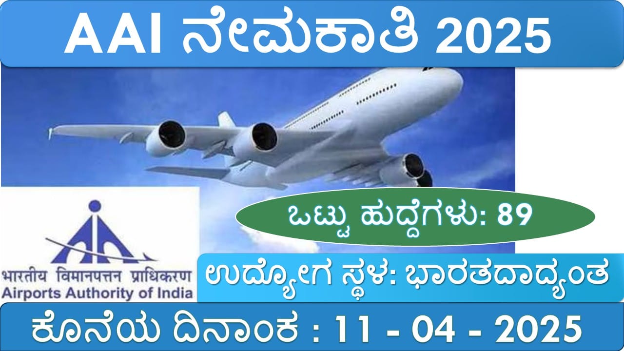AAI ನೇಮಕಾತಿ 2025: ಏರ್ಪೋರ್ಟ್ಸ್ ಅಥಾರಿಟಿ ಆಫ್ ಇಂಡಿಯಾ (AAI) 89 ಜೂನಿಯರ್ ಅಸಿಸ್ಟೆಂಟ್ ಹುದ್ದೆಗಳ ನೇಮಕಾತಿಗೆ ಅರ್ಜಿಗಳನ್ನು ಆಹ್ವಾನಿಸಿದೆ. ಈ ಹುದ್ದೆಗಳಿಗೆ ಅರ್ಹ ಮತ್ತು ಆಸಕ್ತ
