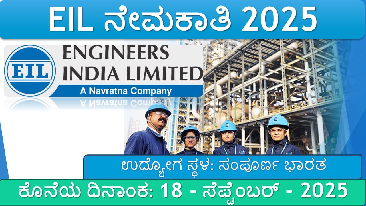 EIL ನೇಮಕಾತಿ ೨೦೨೫: 19 ಮ್ಯಾನೇಜರ್, ಇಂಜಿನಿಯರ್ ಖಾಲಿ ಹುದ್ದೆಗಳಿಗೆ ಅರ್ಜಿ ಸಲ್ಲಿಸಿ. ಯೋಗ್ಯ ಮತ್ತು ಆಸಕ್ತಿ ಹೊಂದಿರುವ ಅಭ್ಯರ್ಥಿಗಳಿಂದ ಅರ್ಜಿಗಳನ್ನು ಆಹ್ವಾನಿಸಿರುವ ಇಂಜಿನಿಯರ್ಸ್ ಇಂಡಿಯಾ ಲಿಮಿಟೆಡ್