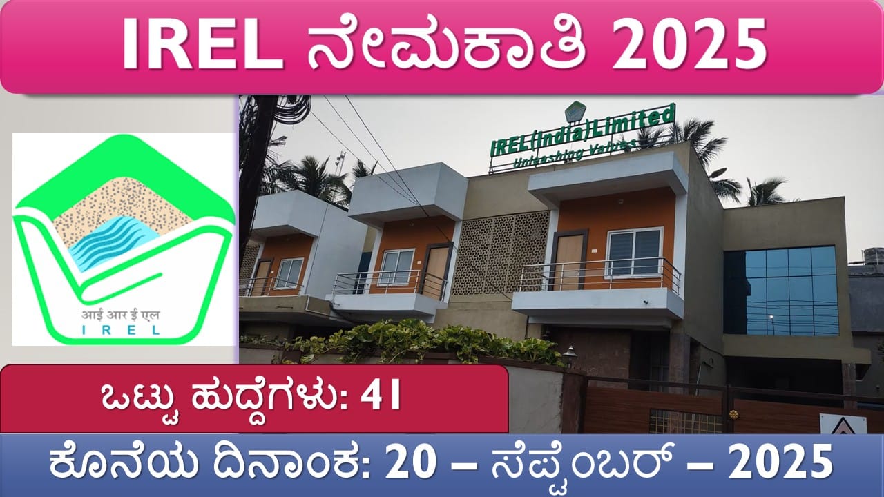 IREL ನೇಮಕಾತಿ 2025: 41 ಶಿಷ್ಯ ತರಬೇತಿದಾರರ ಹುದ್ದೆಗಳಿಗೆ ಅರ್ಜಿ ಸಲ್ಲಿಸಲು ಆಹ್ವಾನಿಸಲಾಗಿದೆ. ಇಂಡಿಯನ್ ರೇರ್ ಎರ್ಥ್ಸ್ ಲಿಮಿಟೆಡ್ (IREL) ಸಂಸ್ಥೆ 2025ರ ಆಗಸ್ಟ್ ತಿಂಗಳ ಅಧಿಕೃತ