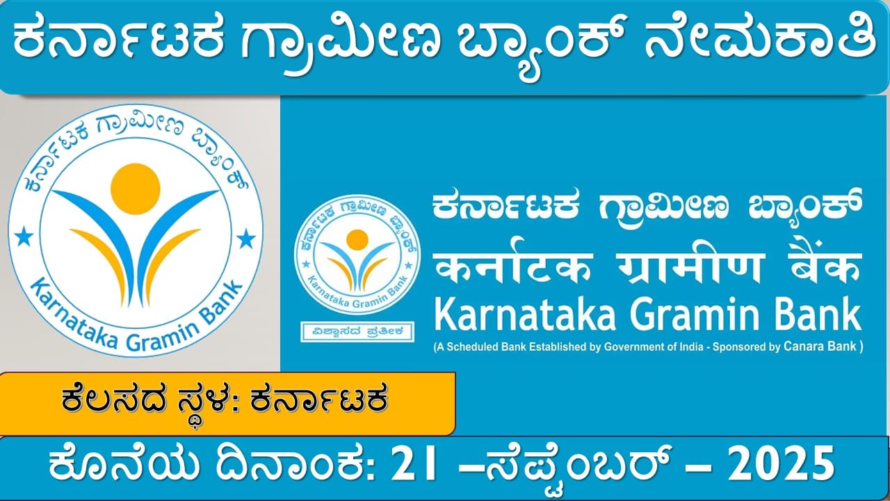 ಕರ್ನಾಟಕ ಗ್ರಾಮೀಣ ಬ್ಯಾಂಕ್ ನೇಮಕಾತಿ 2025: 1425 ಆಫೀಸ್ ಅಸಿಸ್ಟೆಂಟ್, ಆಫೀಸರ್ ಹುದ್ದೆಗಳಿಗೆ ಅರ್ಜಿ ಆಹ್ವಾನಿಸಲಾಗಿದೆ. ಕರ್ನಾಟಕ ಗ್ರಾಮೀಣ ಬ್ಯಾಂಕ್ ತನ್ನ ಅಧಿಕೃತ ಅಧಿಸೂಚನೆ (ಸೆಪ್ಟೆಂಬರ್ 2025)
