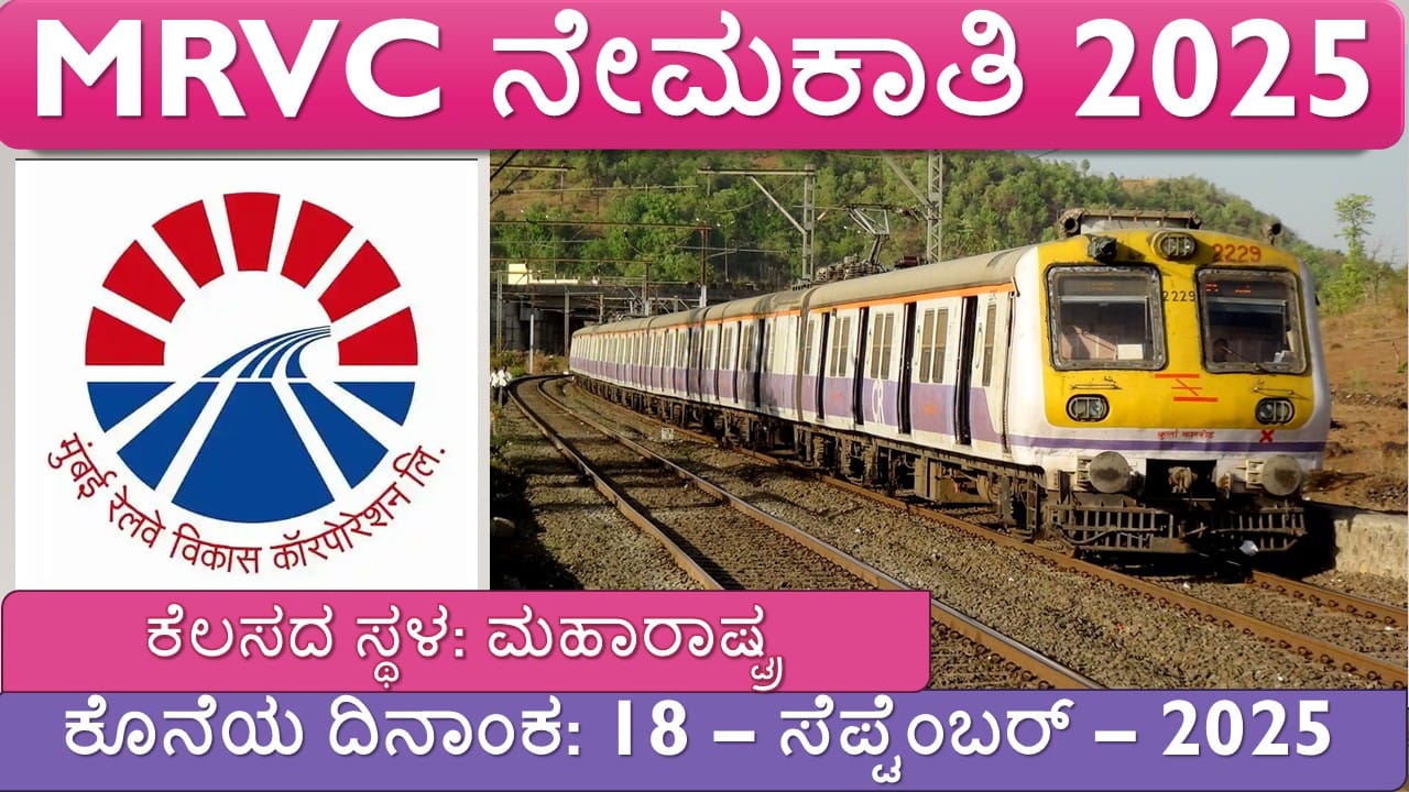 ಎಂಆರ್ವಿಸಿಸಿ ನೇಮಕಾತಿ 2025: 04 ಪ್ರಾಜೆಕ್ಟ್ ಇಂಜಿನಿಯರ್ (ಸಿಗ್ನಲ್ ಮತ್ತು ಟೆಲಿಕಾಂ) ಹುದ್ದೆಗಳಿಗೆ ಅರ್ಜಿ ಆಹ್ವಾನಿಸಲಾಗಿದೆ. ಮುಂಬೈ ರೈಲ್ವೆ ವಿಕಾಸ್ ಕಾರ್ಪೋರೇಶನ್ (MRVC) ಅಧಿಕೃತ ಪ್ರಕಟಣೆ ಆಗಸ್ಟ್
