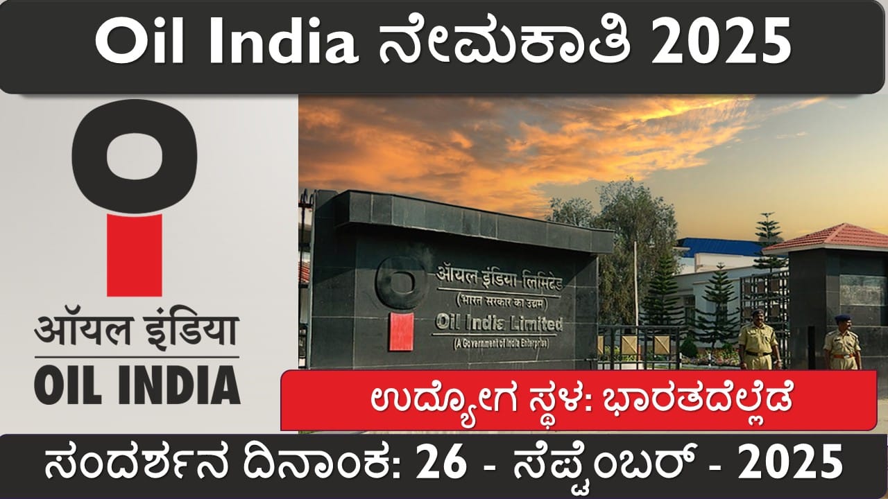 Oil India Recruitment 2025: ಆಯಿಲ್ ಇಂಡಿಯಾ ಲಿಮಿಟೆಡ್ ಸಂಸ್ಥೆಯು 102 Senior Officer, Superintending Engineer ಹುದ್ದೆಗಳಿಗೆ ಅರ್ಜಿ ಆಹ್ವಾನಿಸಿದೆ. 2025ರ ಆಗಸ್ಟ್ನ ಅಧಿಕೃತ ಅಧಿಸೂಚನೆಯ