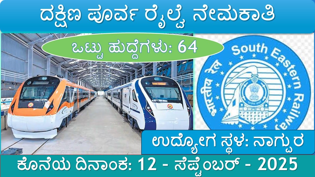 South East Central Railway Recruitment 2025:ದಕ್ಷಿಣ ಪೂರ್ವ ಮಧ್ಯ ರೈಲ್ವೇ (SECR) 64 ಇಂಜಿನಿಯರ್ ಹುದ್ದೆಗಳ ಭರ್ತಿಗಾಗಿ ಅರ್ಹ ಹಾಗೂ ಆಸಕ್ತ ಅಭ್ಯರ್ಥಿಗಳಿಂದ ಅರ್ಜಿಗಳನ್ನು ಆಹ್ವಾನಿಸಿದೆ.
