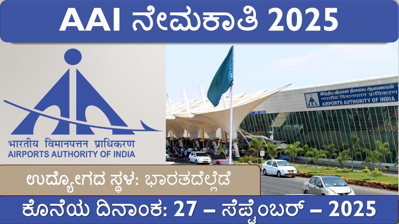 AAI ನೇಮಕಾತಿ 2025: 976 ಜೂನಿಯರ್ ಎಕ್ಸಿಕ್ಯೂಟಿವ್ ಹುದ್ದೆಗಳಿಗೆ ಅರ್ಜಿ ಆಹ್ವಾನಿಸಲಾಗಿದೆ. ಏರ್ಪೋರ್ಟ್ ಅಥಾರಿಟಿ ಆಫ್ ಇಂಡಿಯಾ (AAI) ಅಧಿಕೃತ ಪ್ರಕಟಣೆ (ಆಗಸ್ಟ್ 2025) ಮೂಲಕ ಅರ್ಹ