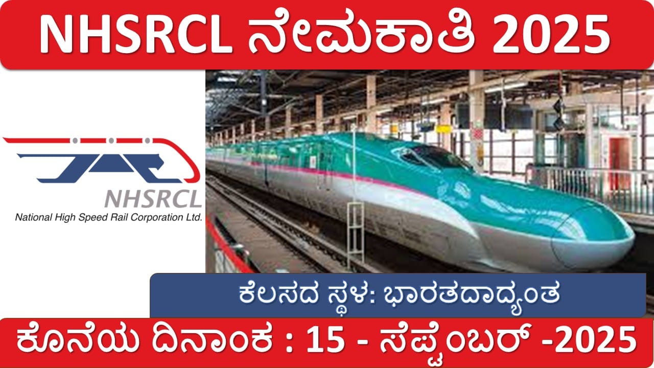 NHSRCL (National High Speed Rail Corporation Limited) Recruitment 2025 ಸಂಸ್ಥೆ: National High Speed Rail Corporation Limited (NHSRCL)ಯೋಜನೆ: ಮುಂಬೈ – ಅಹಮದಾಬಾದ್