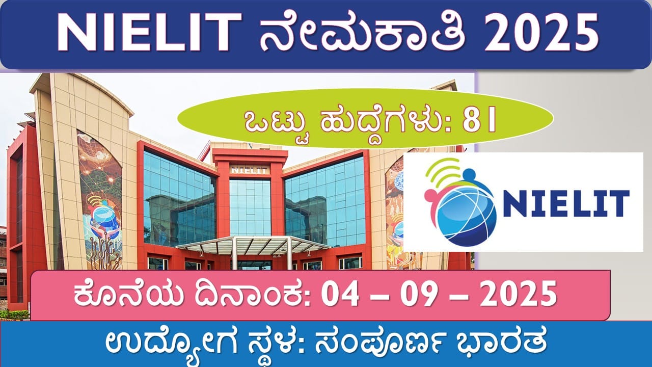 NIELIT ನೇಮಕಾತಿ 2025: 81 ರಿಸೋರ್ಸ್ ಪರ್ಸನ್ಸ್ ಹುದ್ದೆಗಳಿಗೆ ಅರ್ಜಿ ಆಹ್ವಾನಿಸಲಾಗಿದೆ. ನ್ಯಾಷನಲ್ ಇನ್ಸ್ಟಿಟ್ಯೂಟ್ ಆಫ್ ಎಲೆಕ್ಟ್ರಾನಿಕ್ಸ್ & ಇನ್ಫರ್ಮೇಶನ್ ಟೆಕ್ನಾಲಜಿ (NIELIT) ಅಧಿಕೃತ ಪ್ರಕಟಣೆ (ಆಗಸ್ಟ್