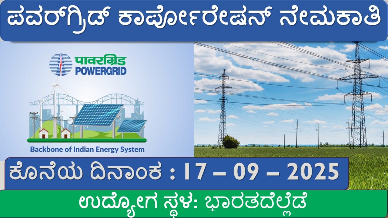 ⚡ ಪವರ್ಗ್ರಿಡ್ನ ಪ್ರಗತಿಗೆ ಜತೆಗಾರರಾಗಿ – 2025 ನೇಮಕಾತಿ ಪವರ್ಗ್ರಿಡ್ ಕಾರ್ಪೋರೇಷನ್ ಆಫ್ ಇಂಡಿಯಾ ಲಿಮಿಟೆಡ್ (ಭಾರತ ಸರ್ಕಾರದ ಅಧೀನದಲ್ಲಿರುವ ಮಹತ್ವದ ಸಂಸ್ಥೆ) ವಿವಿಧ ಹುದ್ದೆಗಳ ನೇಮಕಾತಿಗೆ