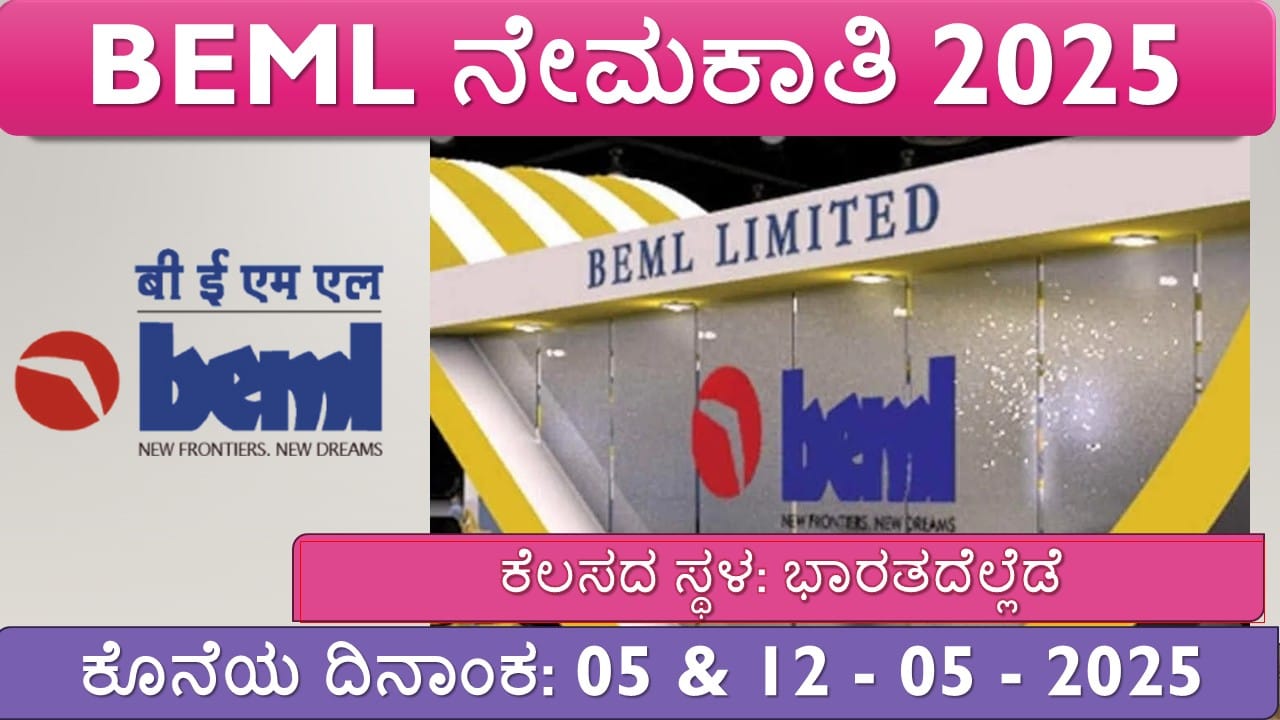 BEML ನೇಮಕಾತಿ 2025: 682 Non Executive, Management Trainee ಹುದ್ದೆಗಳನ್ನು ಭರ್ತಿ ಮಾಡಲು ಅರ್ಜಿ ಆಹ್ವಾನಿಸಲಾಗಿದೆ. ಭಾರತ ಅರ್ಥ್ ಮೂವರ್ಸ್ ಲಿಮಿಟೆಡ್ (BEML) ಅಧಿಕೃತ ಅಧಿಸೂಚನೆ