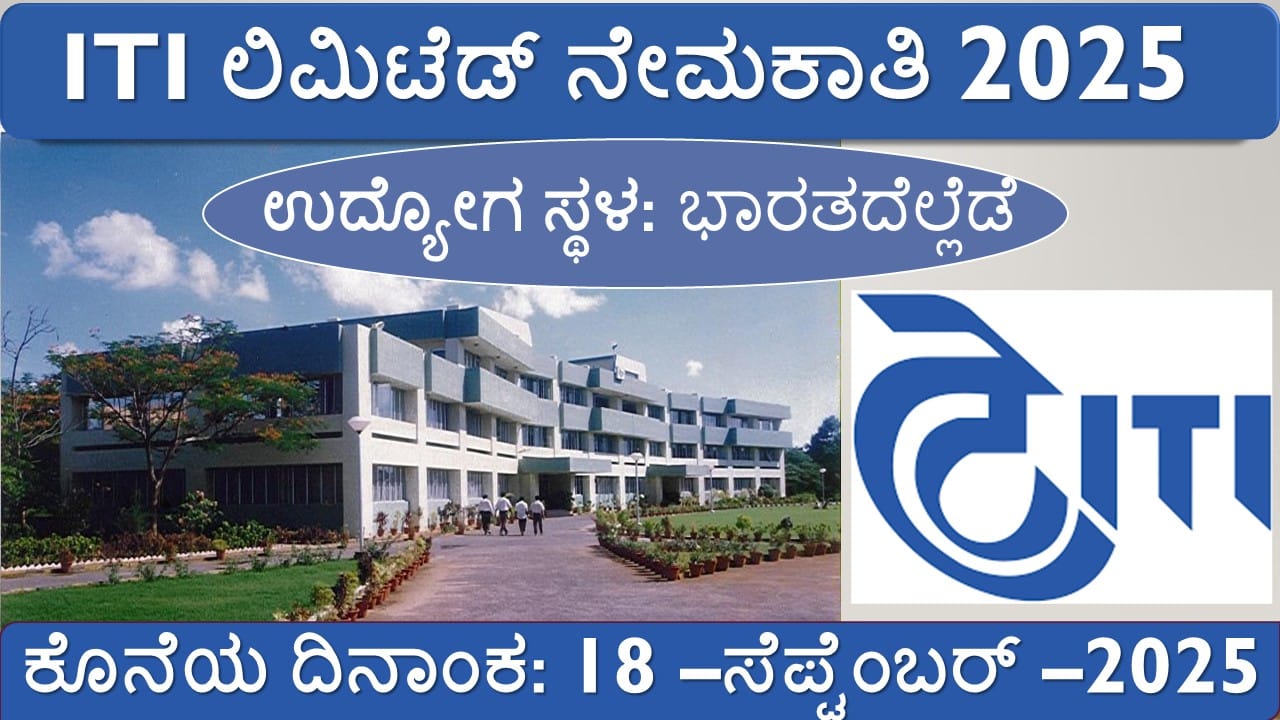 ಐಟಿಐ ಲಿಮಿಟೆಡ್ ನೇಮಕಾತಿ 2025: 07 ಜನರಲ್ ಮ್ಯಾನೇಜರ್, ಎಕ್ಸಿಕ್ಯೂಟಿವ್ ಹುದ್ದೆಗಳಿಗೆ ಅರ್ಜಿ ಆಹ್ವಾನಿಸಲಾಗಿದೆ. ಇಂಡಿಯನ್ ಟೆಲಿಫೋನ್ ಇಂಡಸ್ಟ್ರೀಸ್ ಲಿಮಿಟೆಡ್ (ITI Limited) ತನ್ನ ಅಧಿಕೃತ ಅಧಿಸೂಚನೆ